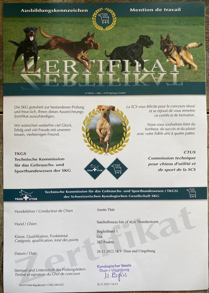 BegleithundeprĂŒfung (BH 1) 26.11.2022 Â 2. Platz đ