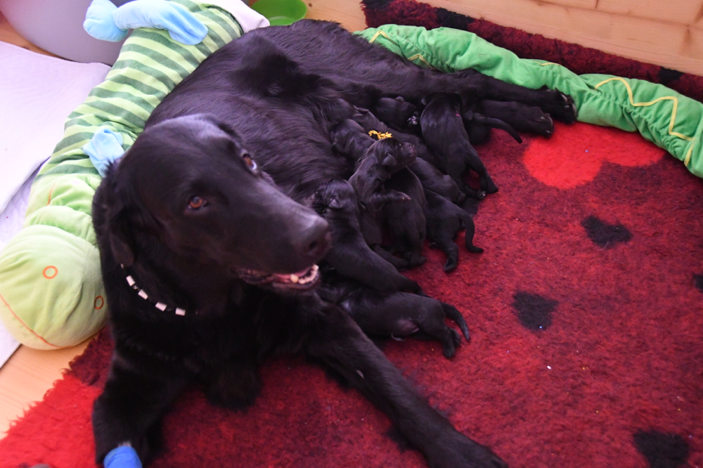 uns auf 4 Rüden und 5 Hündinnen alle schwarz - erstaunlicherweise hat es leider keine Braunen Welpen gegeben - Wir freuen uns sehr auf die Welpenzeit