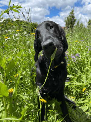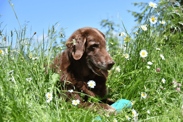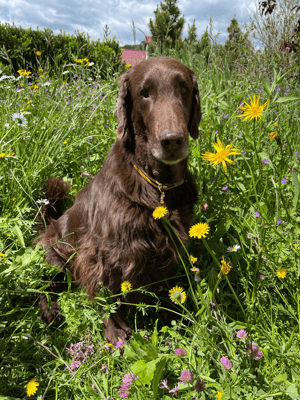Kiri mit ihrem geliebten Dummy und natürlich die Frühlingswiese 😎auch noch mit knapp 14,5 Jahren funktioniert die Nase noch bestens - jedes Dummy