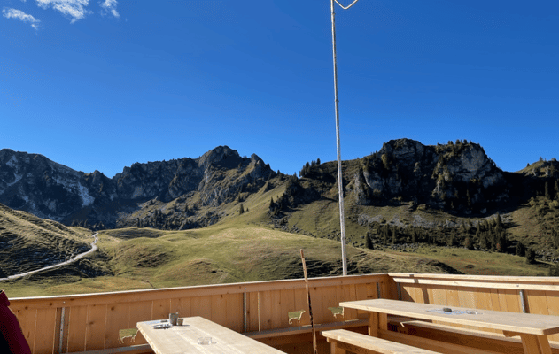 12.9.2021 Bei dem tollen Wetter im Seebergsee baden - das neu erstellte Restaurant Seebergsee bewundern das letztes Jahr abgebrannt ist und das 1. Vermicelles der Saison geniessen- ein rundum
