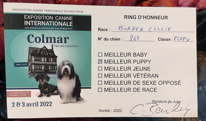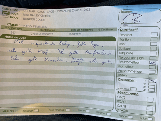 1.5.2022 Jima besteht heute Bravurös den Wesenstest in Yverdon - ich freue mich riesig über meine neue Zucht Hündin - super gemacht Jima