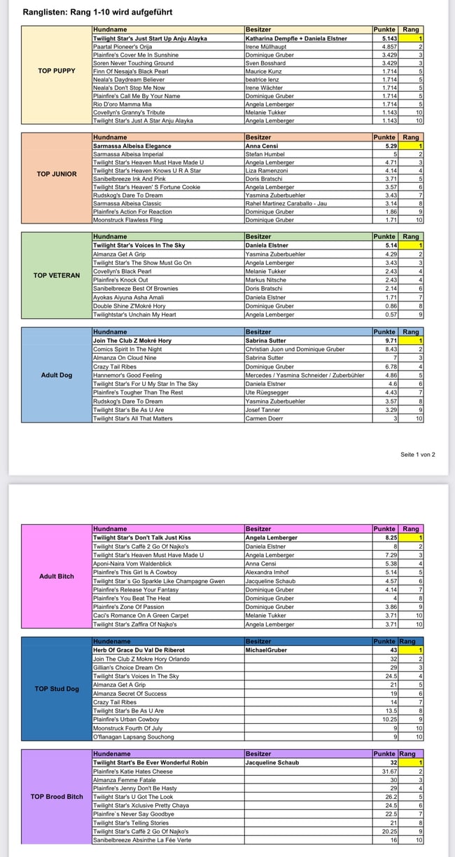 Ich habe mich sehr gefreut über die tollen Ergebnisse der beiden Shows- leider wurden keine Richterberichte geschrieben was ich sehr schade fand