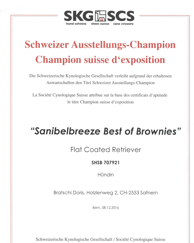4.12.2016 Nun ist es offiziell - die Ausstellungs-Champion Urkunde von Brownie ist eingetroffen - wir freuen uns riesig über unseren neuen Champion. Wie wird man Champion....... Brownie hat mit Hanspeter ein Field Trial mit vorzüglich bestanden - danach war sie auf ein paar Ausstellungen in der Workingklasse und musste immer V1 mit CAC sein - zwei davon auf Internationalen Ausstellungen - und ja - Brownie hat es geschafft diese Anforderungen zu erfüllen innert küzerster Zeit....😍