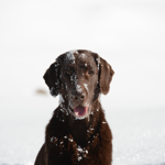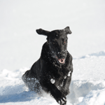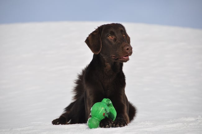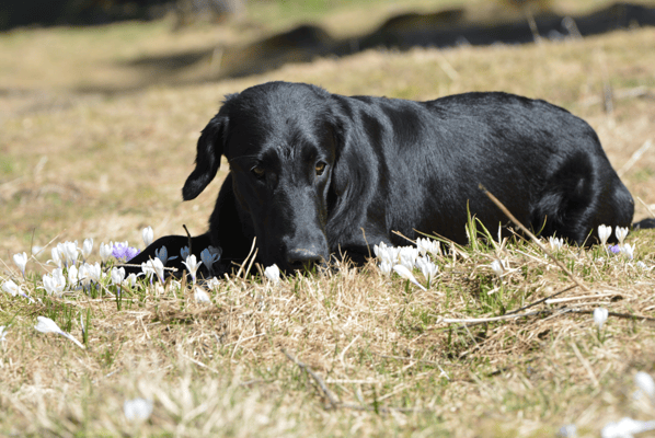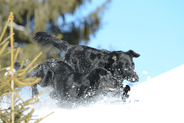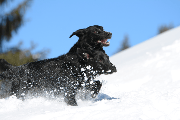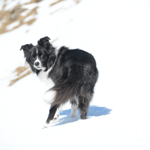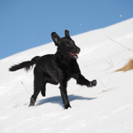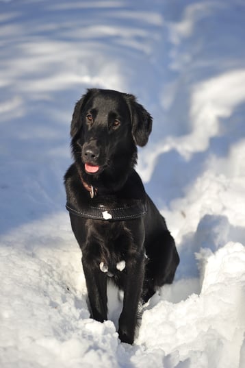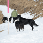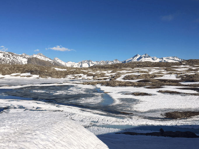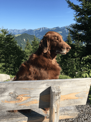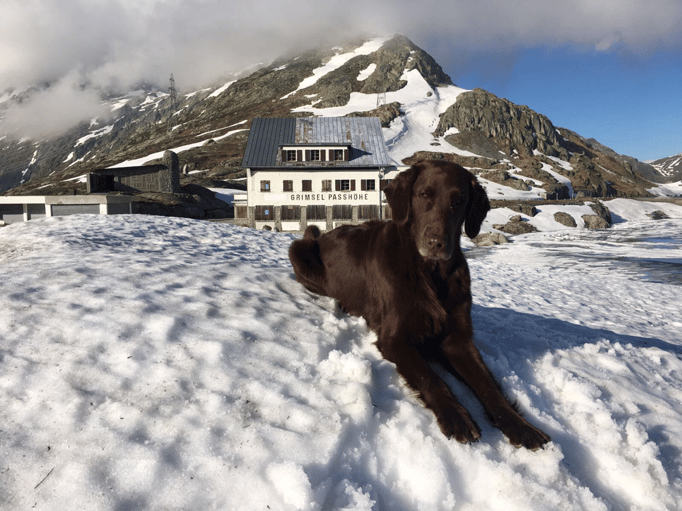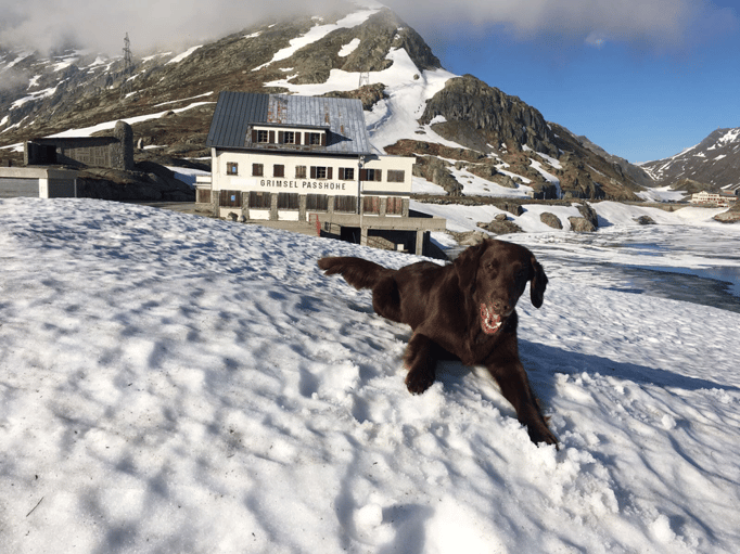 Auf dem Heimweg über dem Grimsel durfte Brownie noch ein bisschen in den Schnee