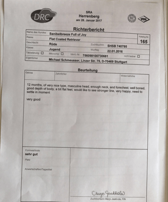 ich freue mich riesig - wieder ein top Ergebnis vom F-Wurf - herzlichen Glückwunsch an Johannes - danke dass Du Blacky hast röntgen lassen