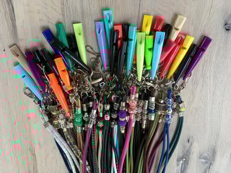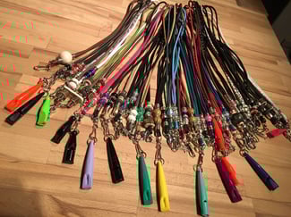 zweifarbige Pfeifen - nun wird es bunt! Gerne fertige ich das passende Band dazu