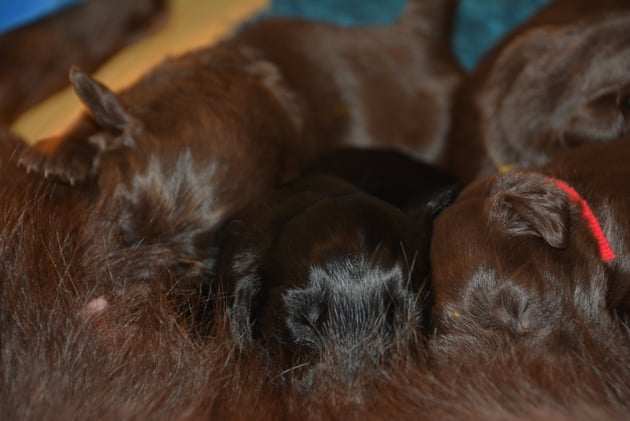 14.9.2017 nun sind die Welpen schon 2 Wochen alt und werden nur von der Milchbar von Brownie ernährt - mehr unter G-Wurf