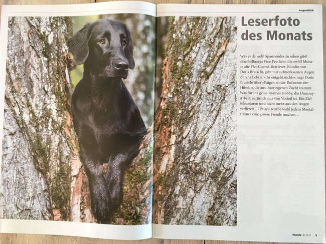 15.6.2017 Paige ist in der Zeitschrift "Hunde" der SKG (Zeitschrift der Schweizerischen Kynologischen Gesellschaft) abgebildet als Leserfoto des Monats. Ich freue mich riesig über diese Ehre
