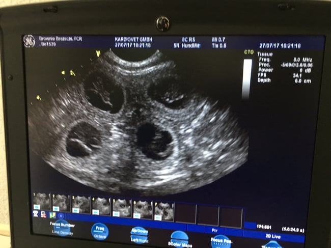 Im Ultraschall haben die kleinen Herzchen schon kräftig geschlagen und man konnte ein paar Fruchtblasen sehen