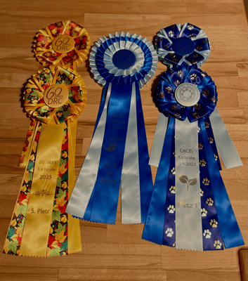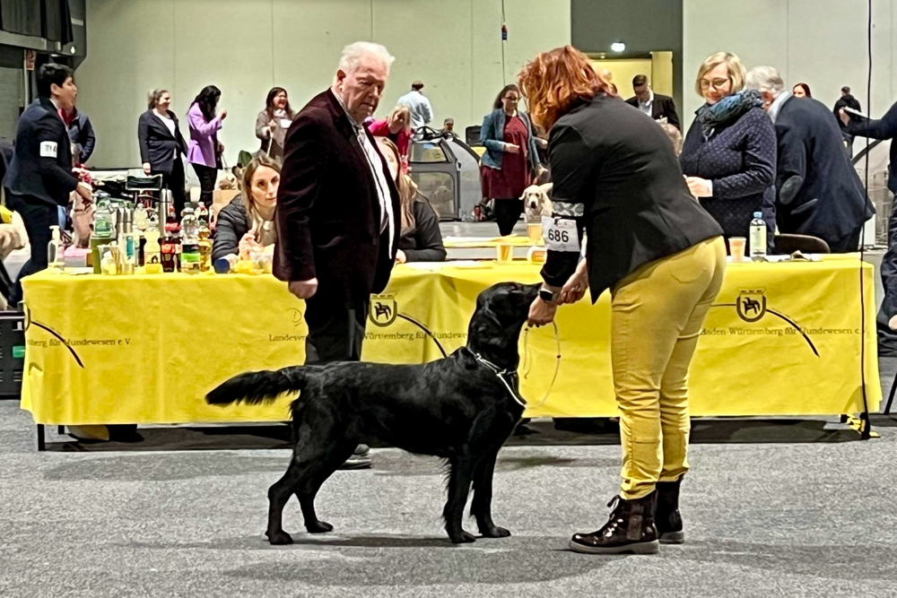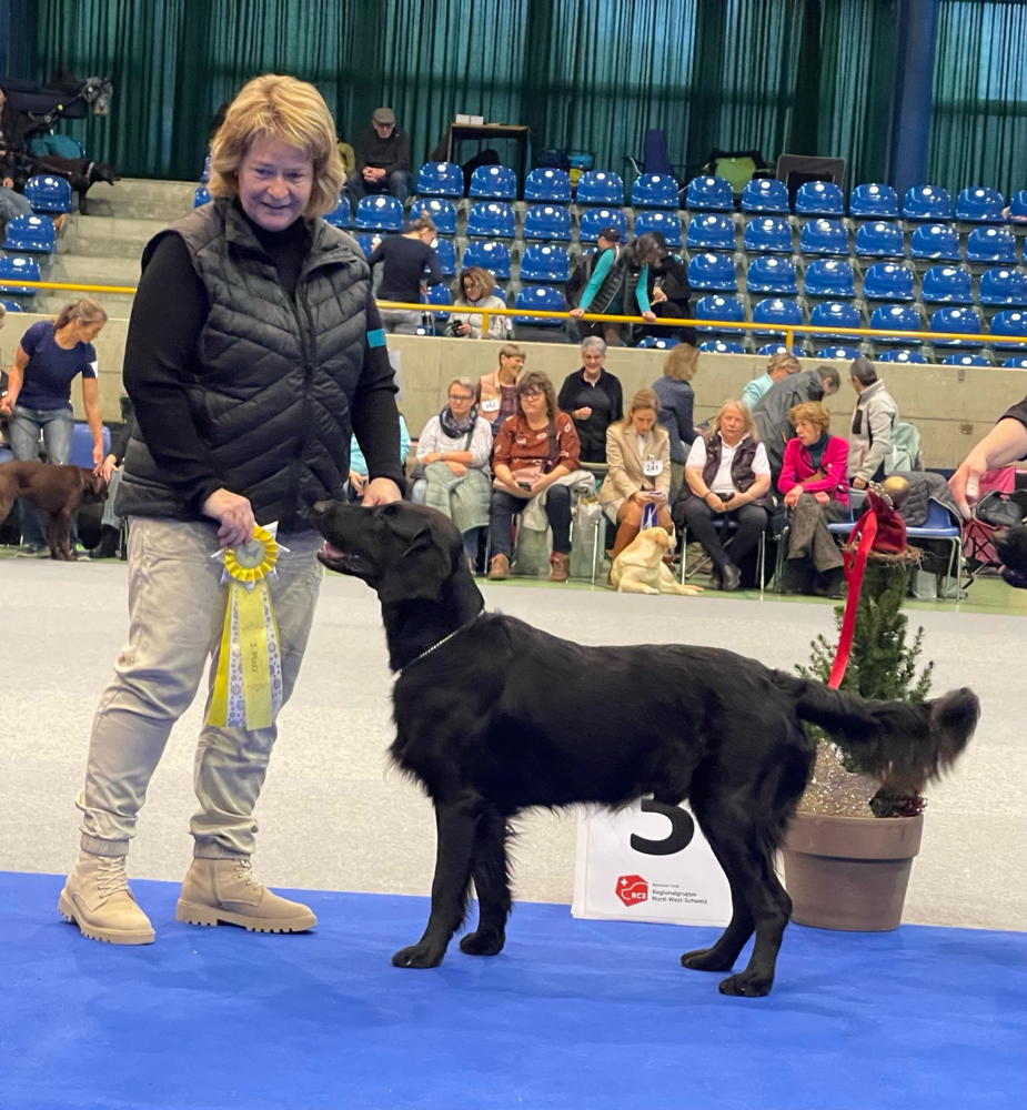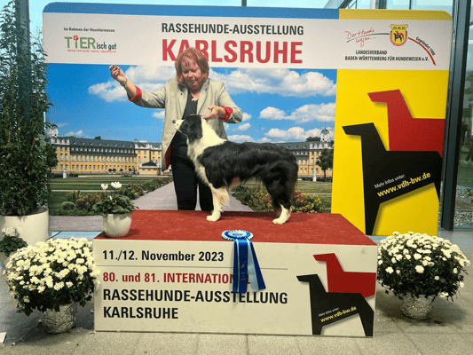 11./12.November 2023 Internationale Ausstellungen in Karlsruhe/D Joy gewinnt an beiden Tagen in der stark besetzten offenen Klasse das V1 CAC am Samstag noch das resCACIB und dann am Sonntag das CACIB und wird auch