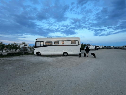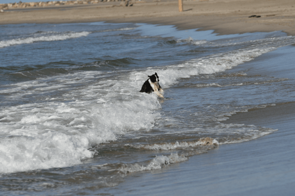 Mai 2024 Paige, Joy und Veerle sind das erste Mal am und im Meer - Brownie kennt das Salzwasser und den Strand schon - Herrlich wars in der Camarque