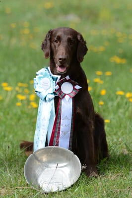 La Nationale Lémanique in Montricher: 24.4.2016 Paige und Fjonn (Sanibelbreeze Firm as a Rock) wurden das erste Mal auf einer Retriever-Show erfolgreich gezeigt beide wurden von der Richterin mit vielversprechend bewertet und Paige wurde dann Best Puppy of Breed, leider reichte das dann im Ehrenring nicht ganz nach vorne - aber dabei sein ist alles und beide haben sich toll präsentiert - danke an Andrea dass Du den weiten Weg auf dich genommen hast um Fjonn zu zeigen.