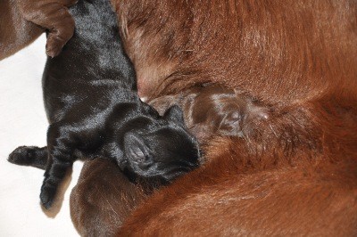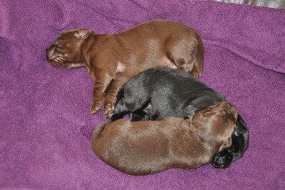 23.2.2012 Hurra die Welpen sind da, 1 Hündin braun, 1 Hündin schwarz, 1 Rüde braun