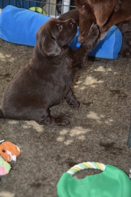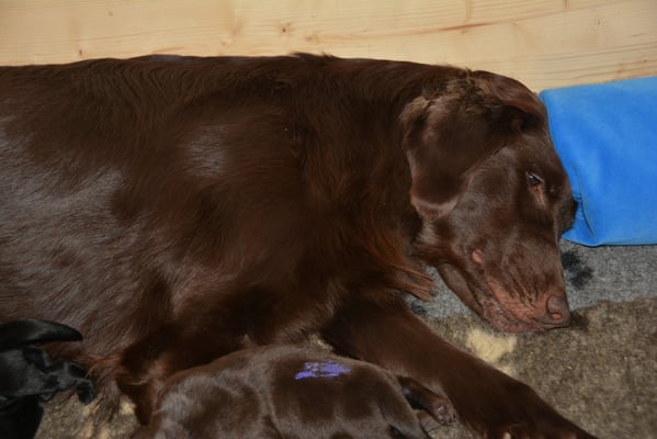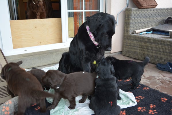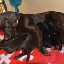2.3.2015 Brownie betreut ihre 5 Welpen einfach vorbildlich sie ist eine tolle Mutter.