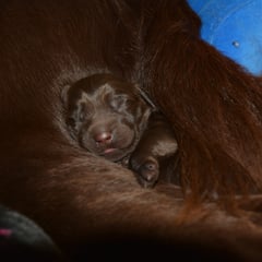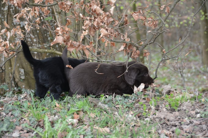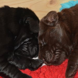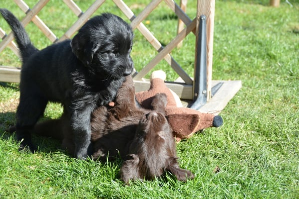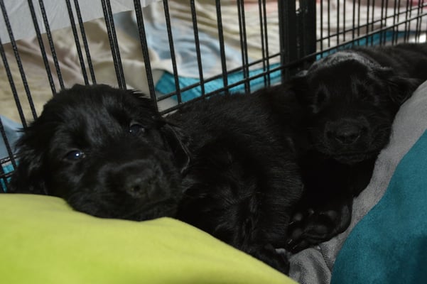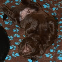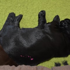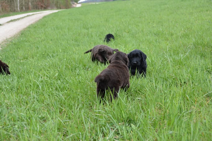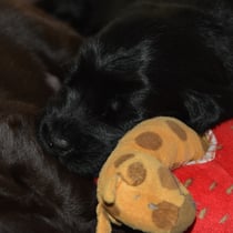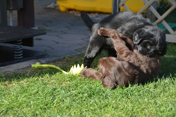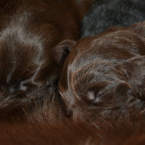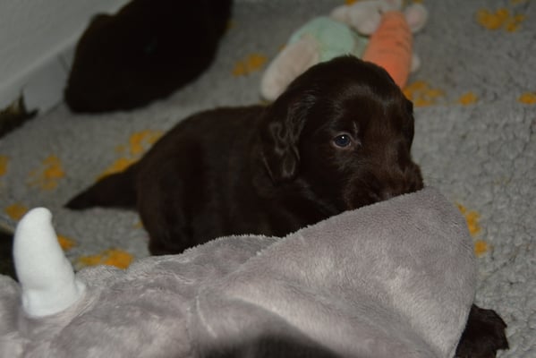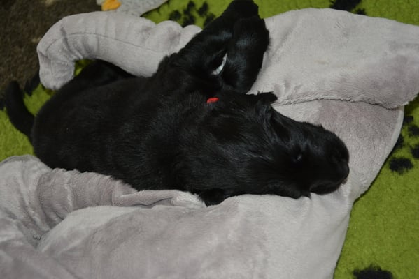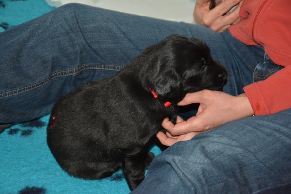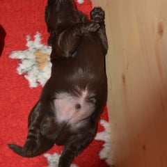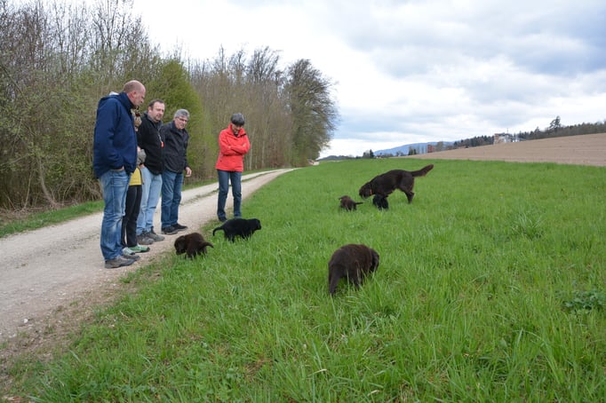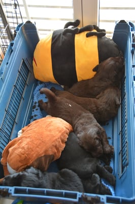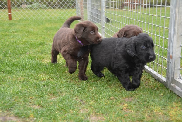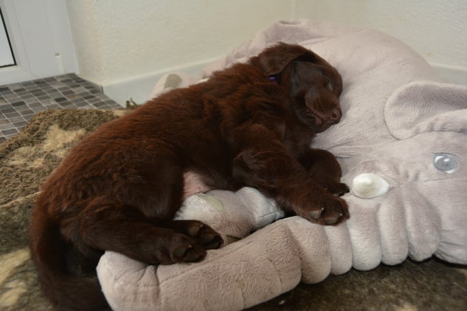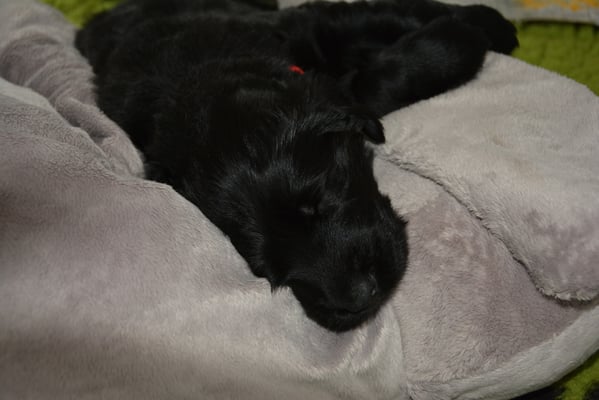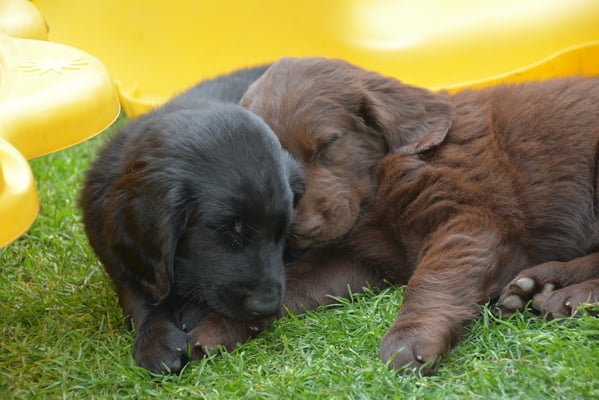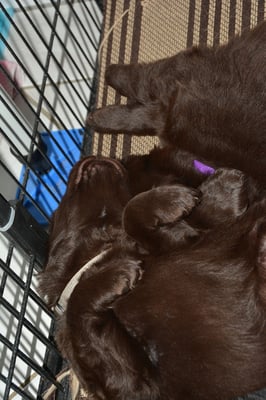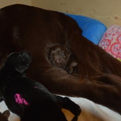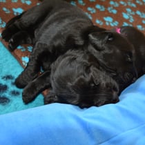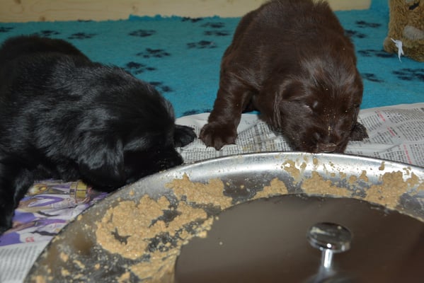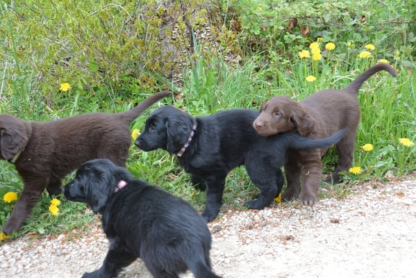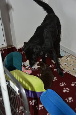 Es sind 1 schwarze Hündin, 2 braune Hündinnen, 1 schwarzer und ein brauner Rüde. Den Fünfen geht's gut sie trinken und schlafen und nehmen schön an Gewicht zu.