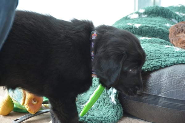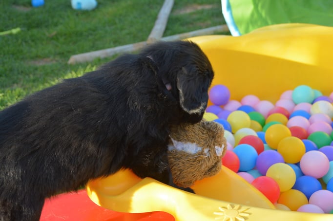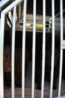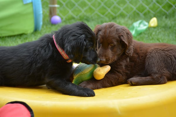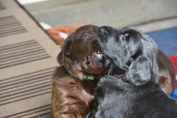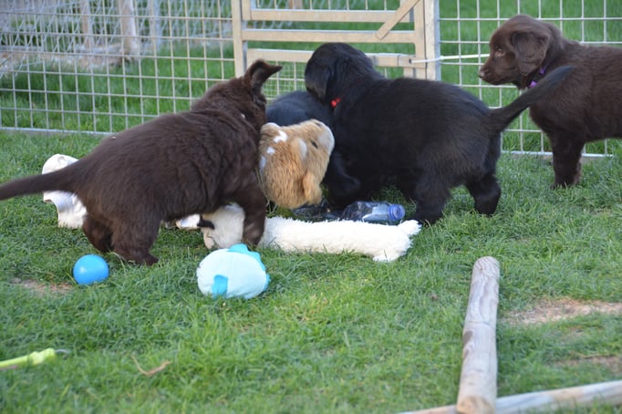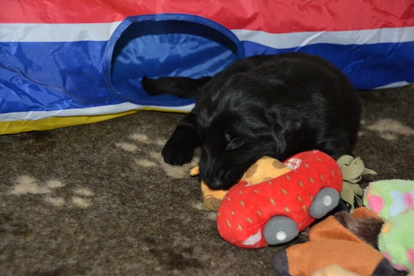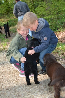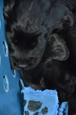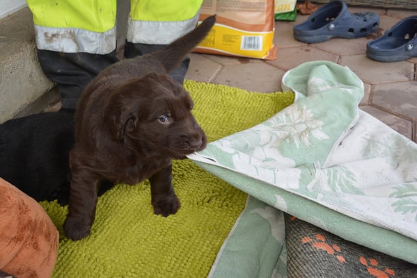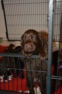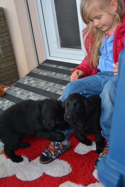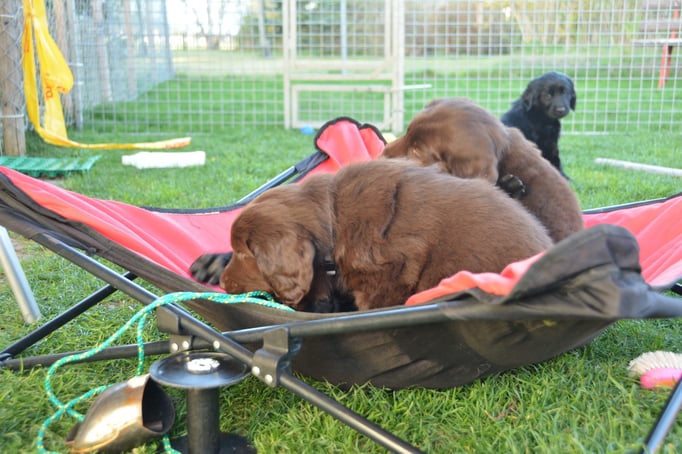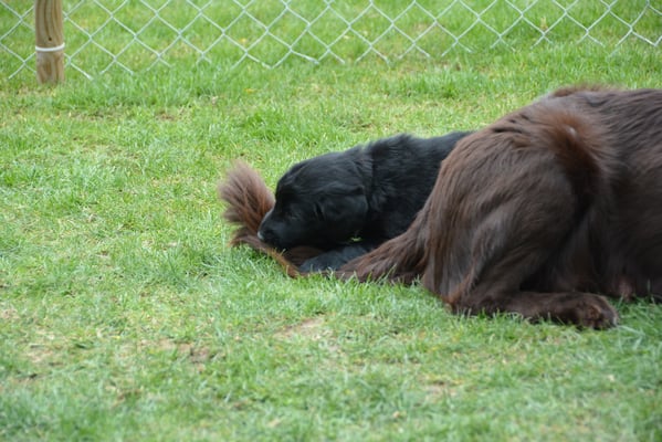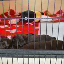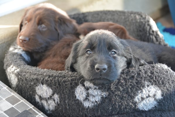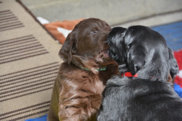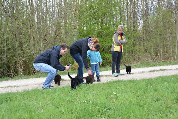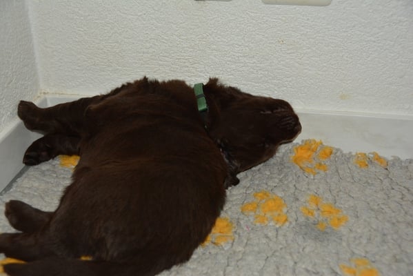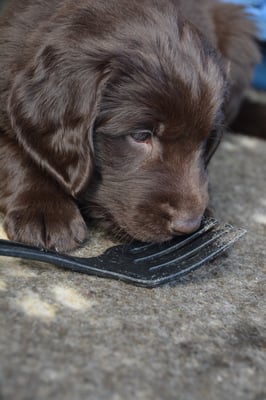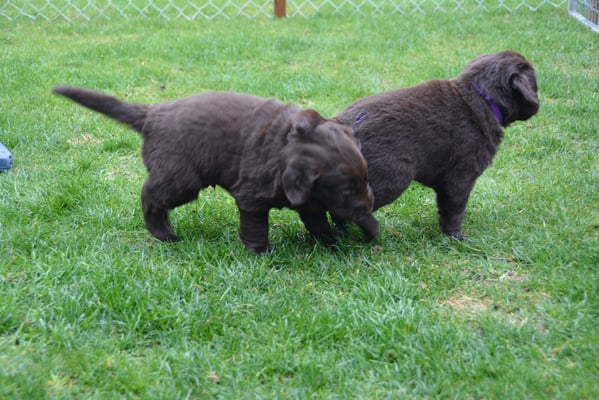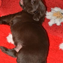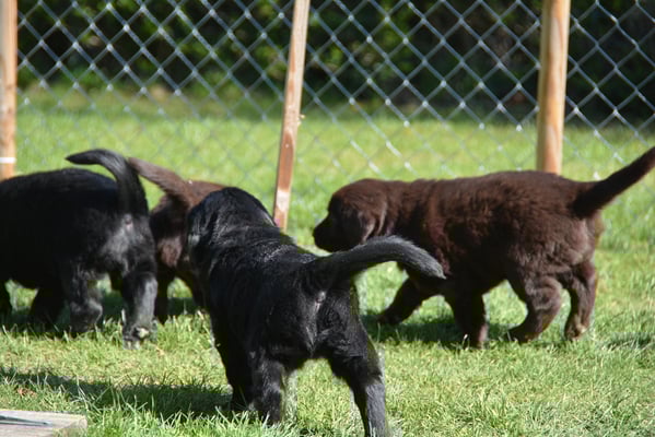 Es sind 1 schwarze Hündin, 2 braune Hündinnen, 1 schwarzer und ein brauner Rüde. Den Fünfen geht's gut sie trinken und schlafen und nehmen schön an Gewicht zu.
