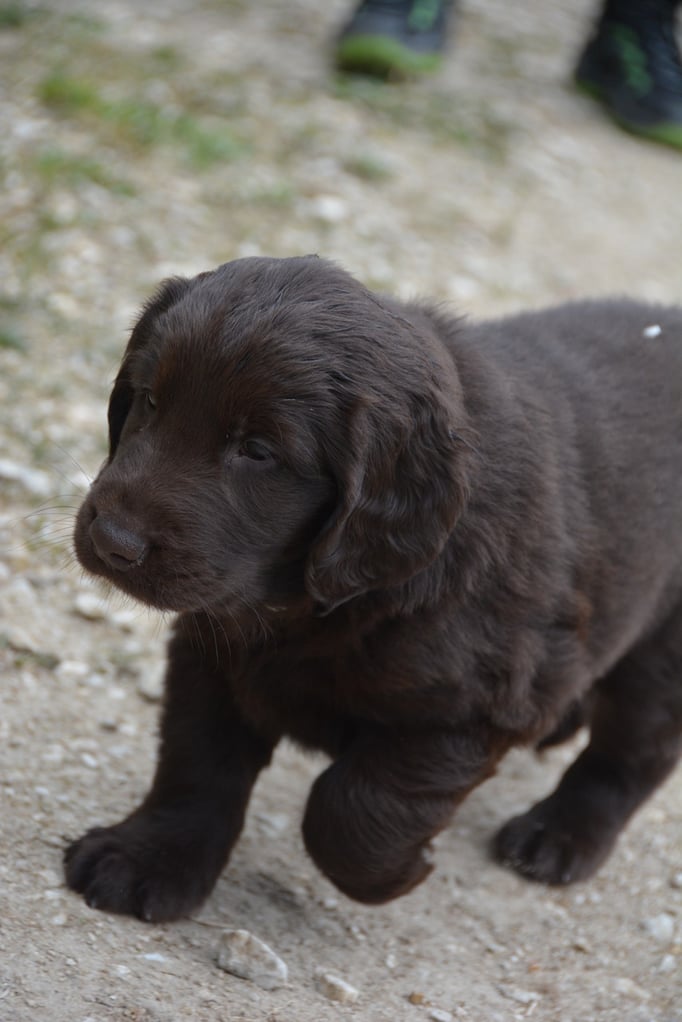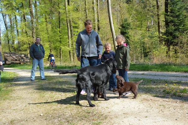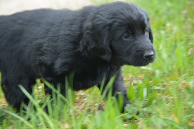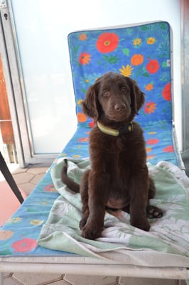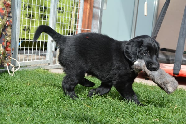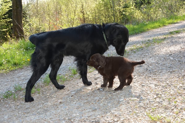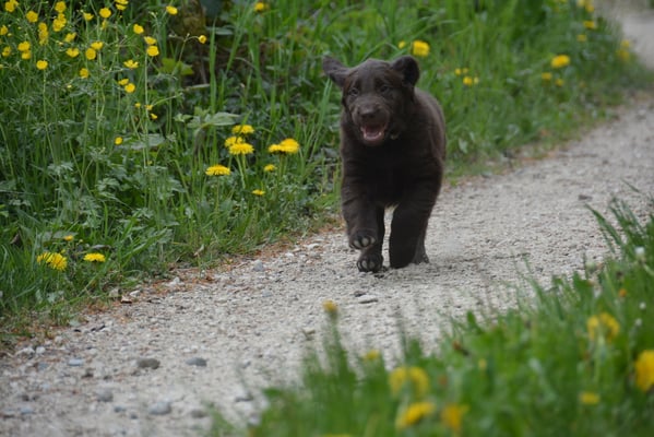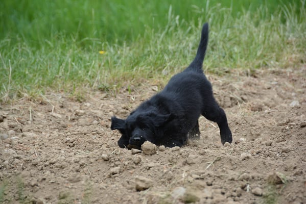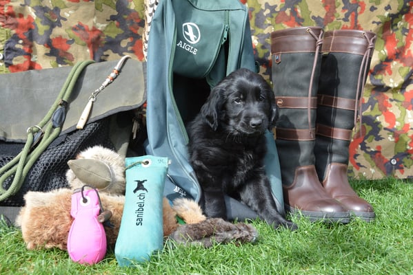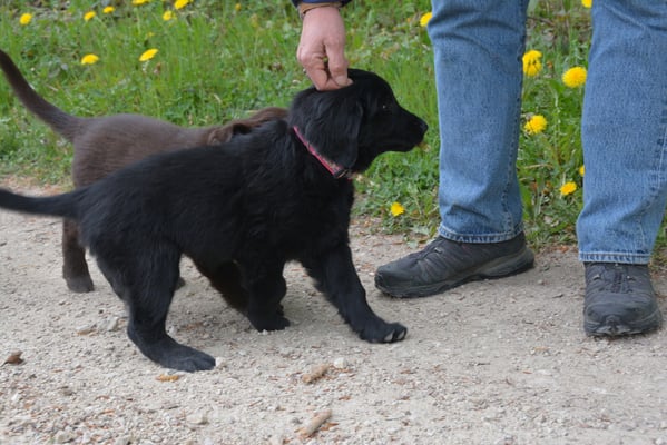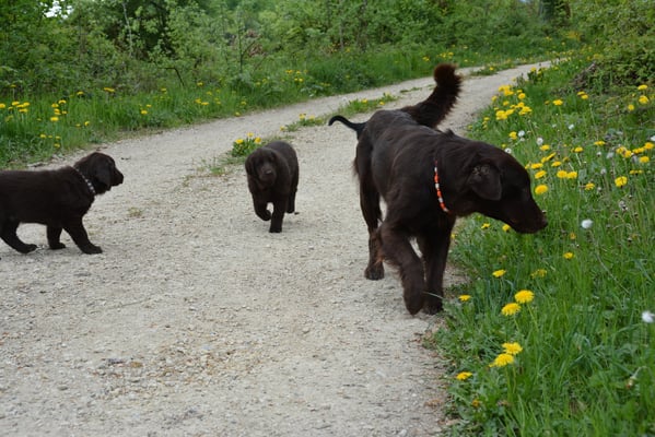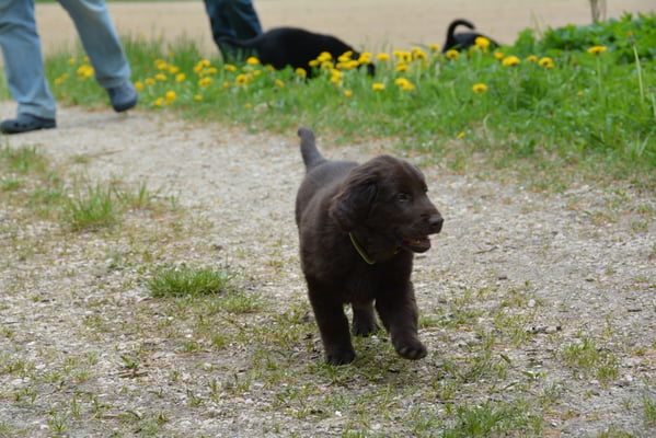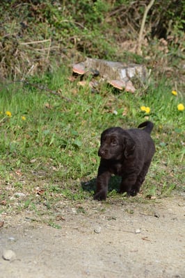 Tolle Flathündin mit ausgezeichneten Retrieverqualitäten. Sicher in allen Belangen,