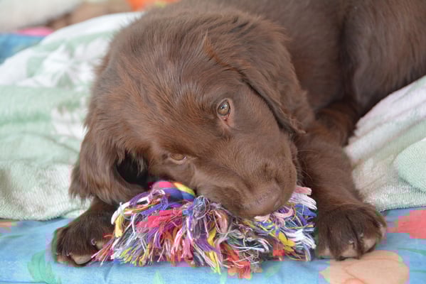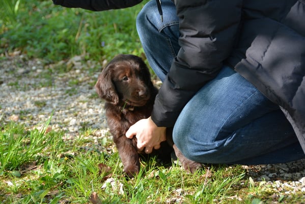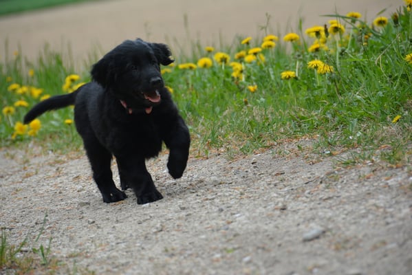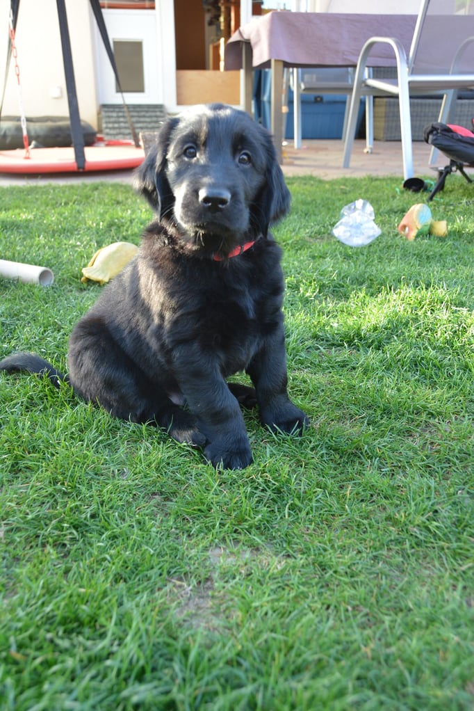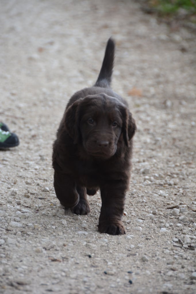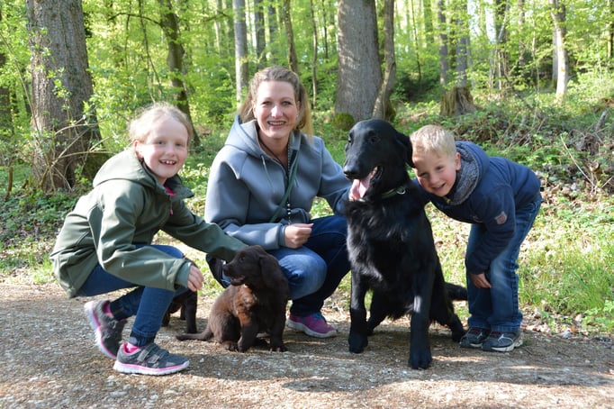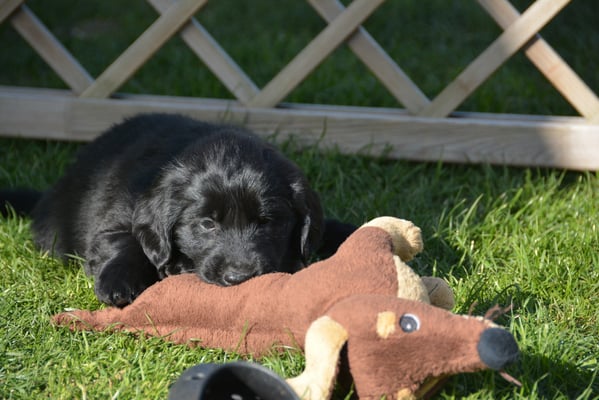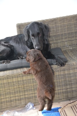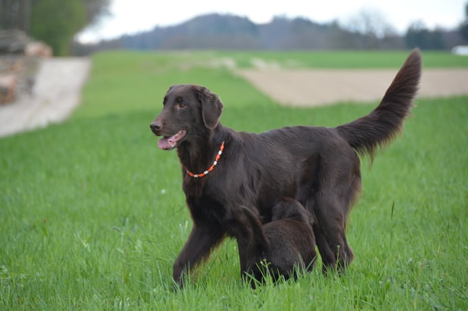Tolle Flathündin mit ausgezeichneten Retrieverqualitäten. Sicher in allen Belangen,