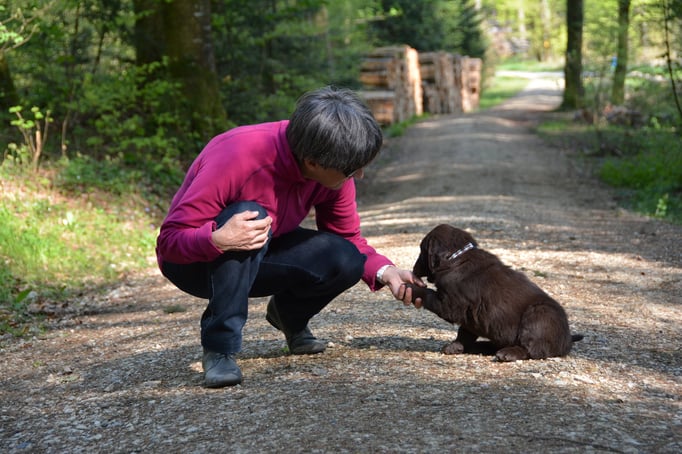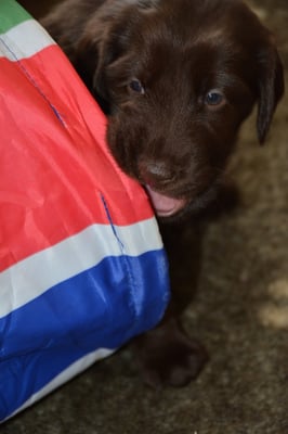 Brownie ist eine sehr temperamentvolle Hündin die es liebt zu apportieren. Ihre Spaziergänge sind Ball geprägt - denn so einer ist immer mit dabei -. Sie ist sehr verspielt und agil, toben mit anderen Hunden mag sie sehr am liebsten mit Loa die vermag ihr Tempo mithalten. Im Schnee ist sie kaum zu bremsen. Sie wird von Hanspeter in Sachen Dummy ausgebildet, sie sind zusammen schon an mehreren Workingtests gestartet..... unser Duracell Brownie Bär oder Purzel wie sie mit Übernamen heisst.