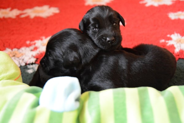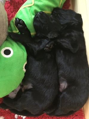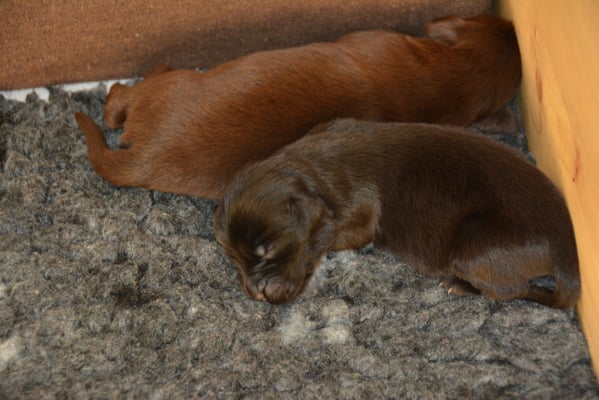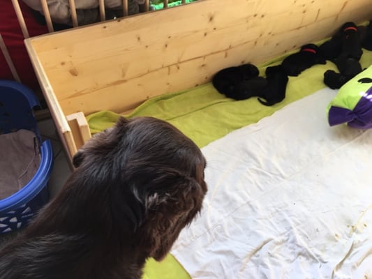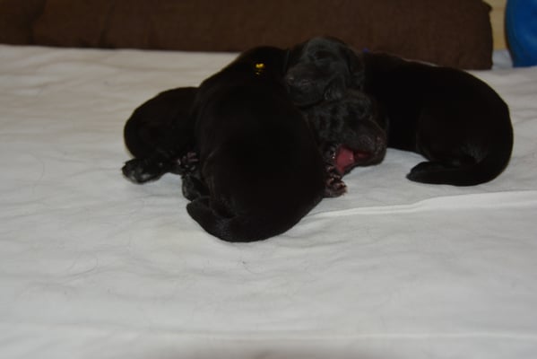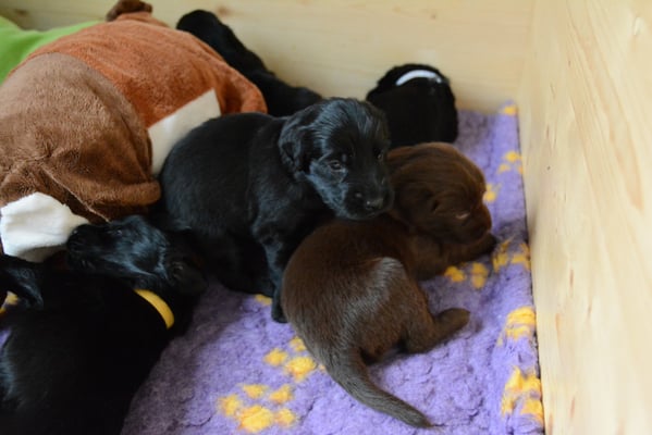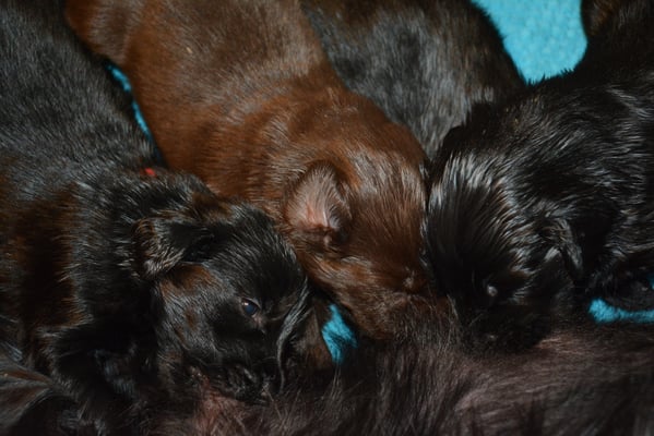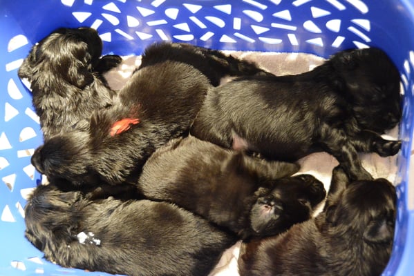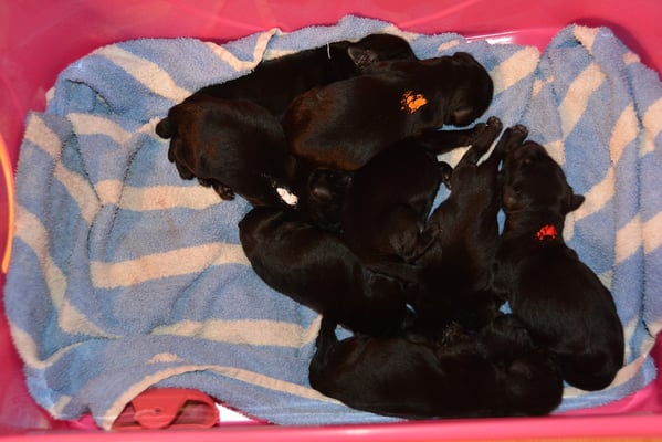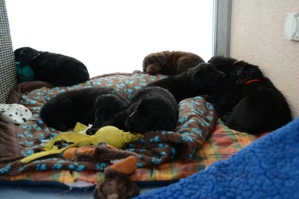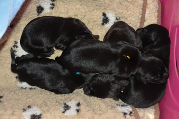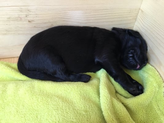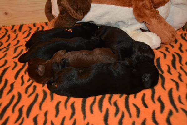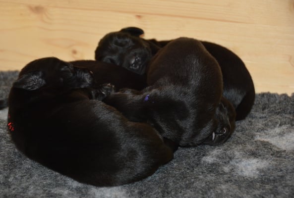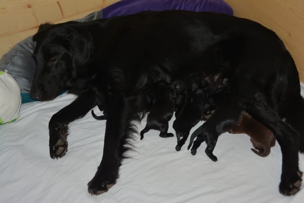 22.1.2015 Die Welpen sind da! Wir freuen uns auf 7 Rüden schwarz, 1 Hündin schwarz und 2 Hündinnen braun - wobei eine Hündin ist so dunkelbraun, dass sie fast als schwarz durchgeht. Toll gemacht Fée wir sind sehr stolz auf dich und natürlich auf den Papa Calle