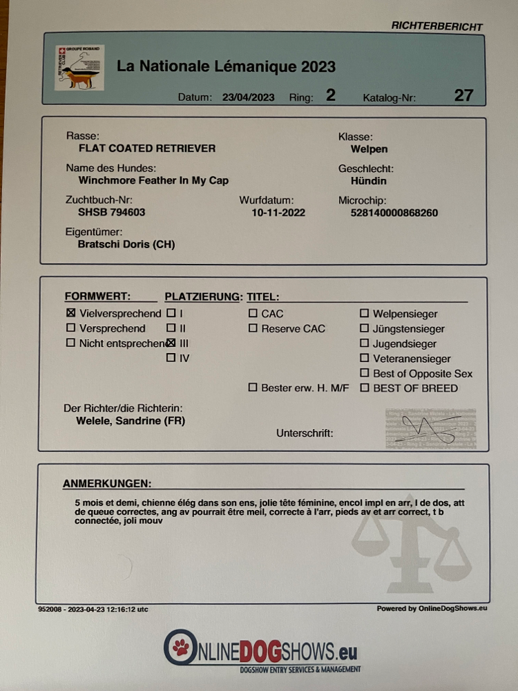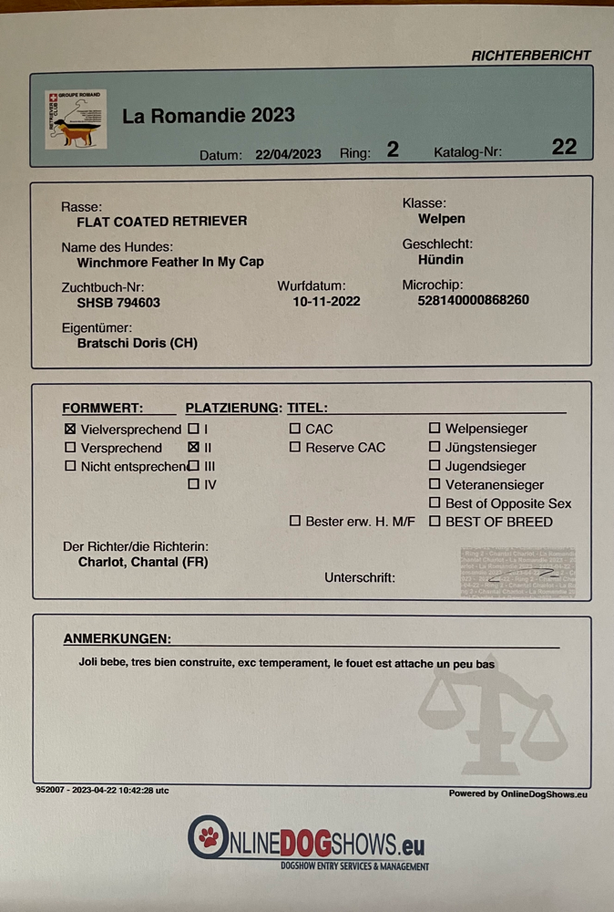 22.4.23 La Romandie in Montricher/VD Welpenklasse vielversprechend 2
