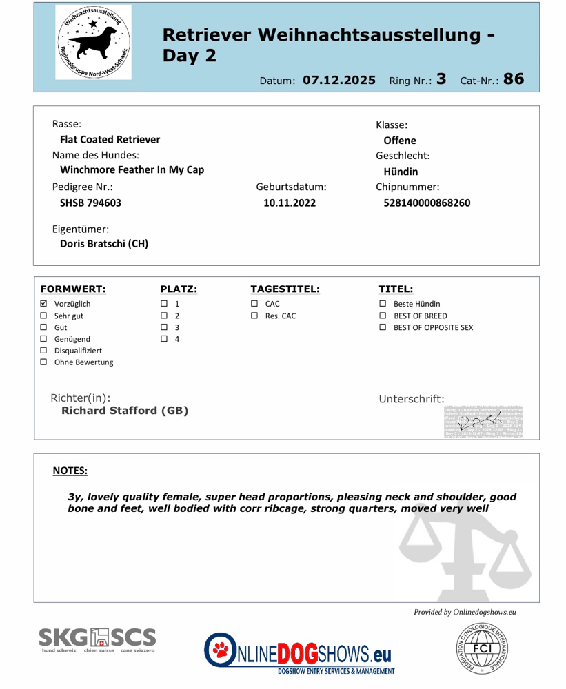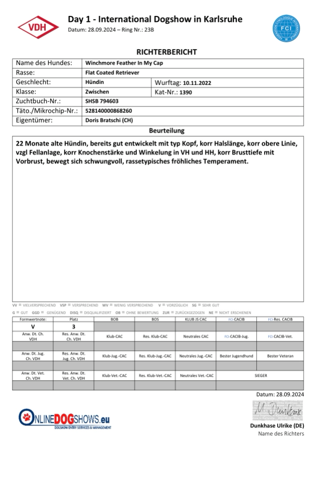 CACIB Show Genf Jugendklasse vorzüglich 4 Richterin: Ann-Christin Johansson, Schweden