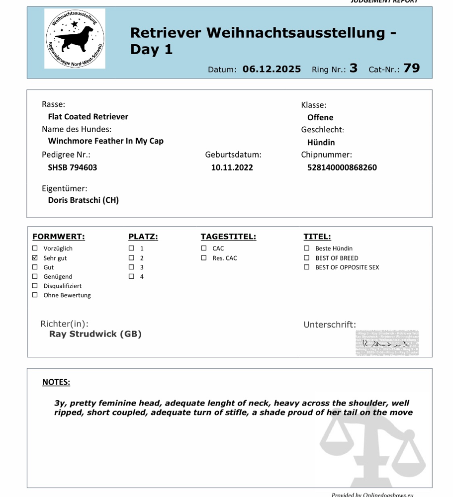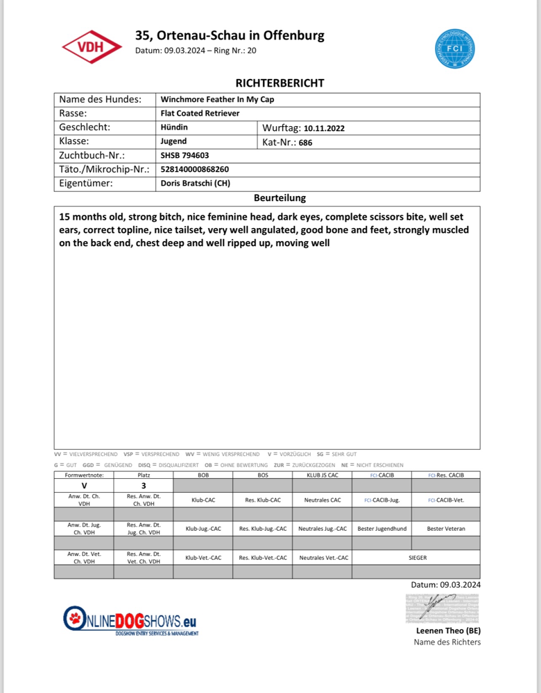 Veerle hat sich super gezeigt und der Richter war einfach super lieb mit ihr und hatte nur lobende Worte für sie- ich freue mich sehr danke Bianca für diesen tollen Hund 😘