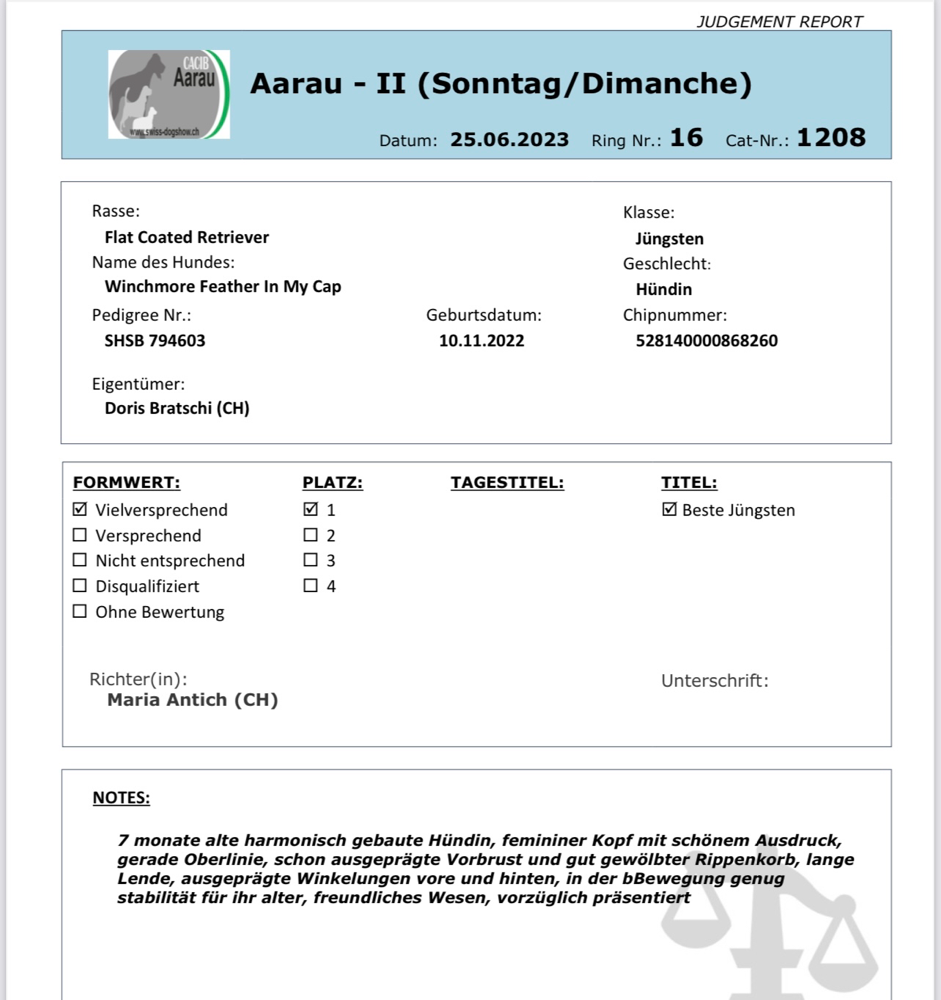 Internationale Ausstellung Aarau 25.6.2023 Jüngstenklasse vielversprechend 1 Best Puppy, Jüngstensieger 2. bester Jüngster in Show